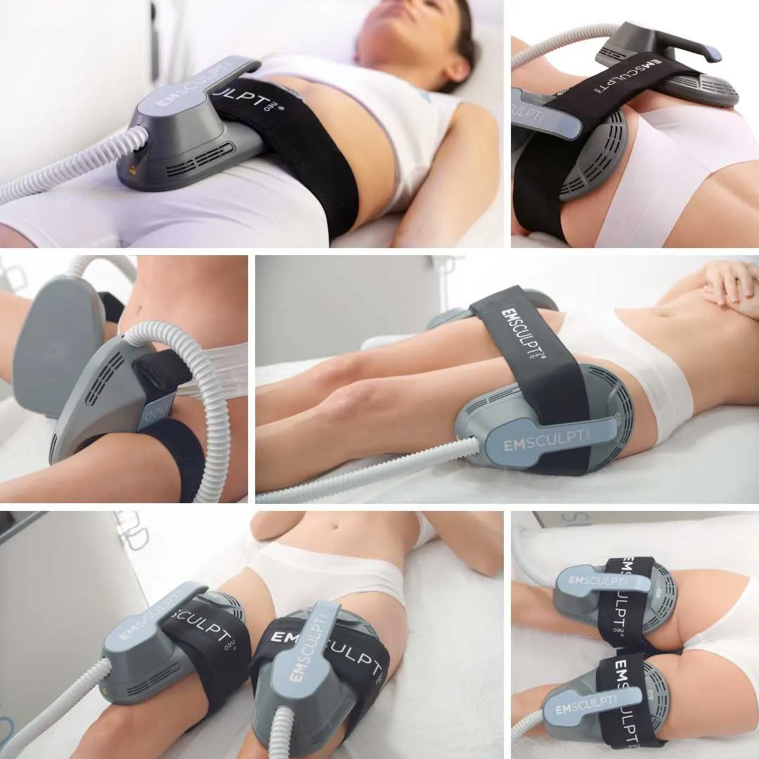You’ll lie comfortably while a skilled provider places the EmSculpt Neo handpiece on the targeted area. The device alternates HIFEM and radiofrequency energies to engage muscles and reduce fat simultaneously.